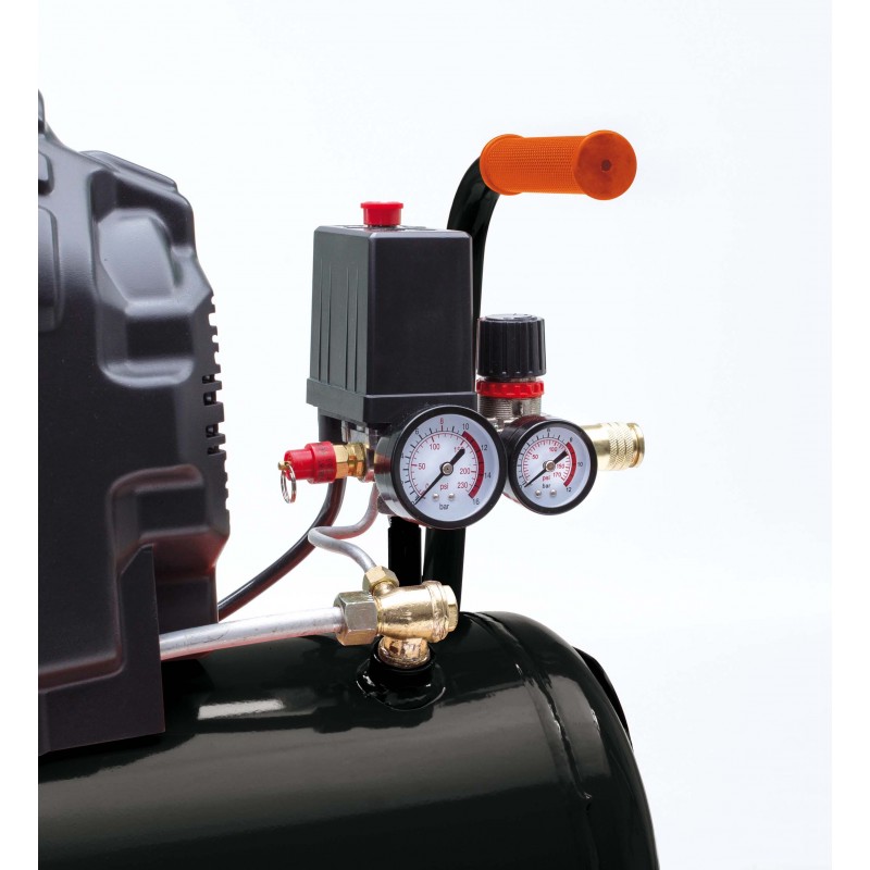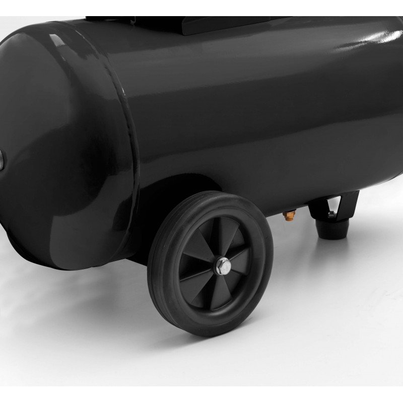 Kiváló minőségű barkácskategóriájú dugattyús kompresszor. Olajkenésű, egybeépített, egylépcsős, egyhengeres kompresszor 1,5 kW teljesítményű elektromotorral. 50 literes légtartályra szerelve, a kerekeknek köszönhetően egyszerűen mozgatható. Felszereltség: elektromechanikus nyomáskapcsoló, nyomáscsökkentő manométerrel és gyorscsatlakozóval, motor hővédelem manuális visszaállítással.