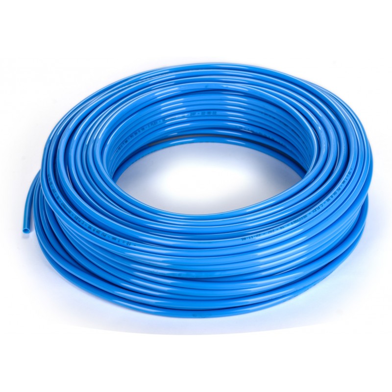 Ipari gépek és berendezések pneumatikus csatlakozásához használható. A poliészteralapú poliuretán 98 Sh A egyenes tömlők alapanyaguknak köszönhetően rendkívül hajlékonyak. A kis hajlítási sugarú tömlők tökéletesen használhatók sűrített levegő szállítására az ipari gépészet területén. Kék színű tömlő.