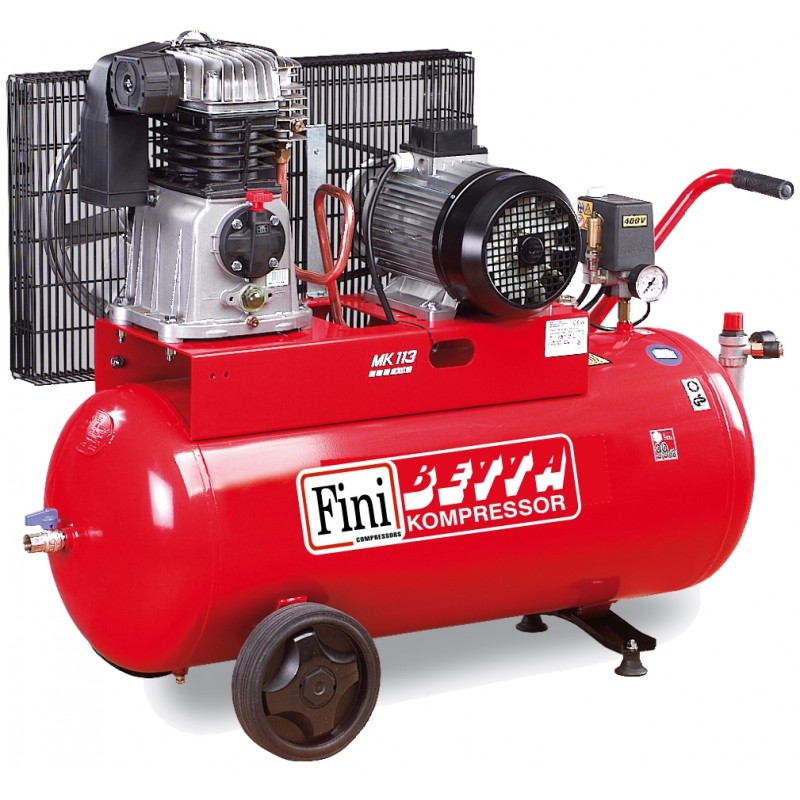 Olajkenésű, ékszíjmeghajtású, egylépcsős, kéthengeres dugattyús kompresszorok 1,5 kW teljesítménytől, 90 - 270 literes légtartályra szerelve rendelhető, a kerekeknek köszönhetően egyszerűen mozgatható. Felszereltség: elektromechanikus nyomáskapcsoló, nyomáscsökkentő manométerrel és gyorscsatlakozóval, motor hővédelem manuális visszaállítással.