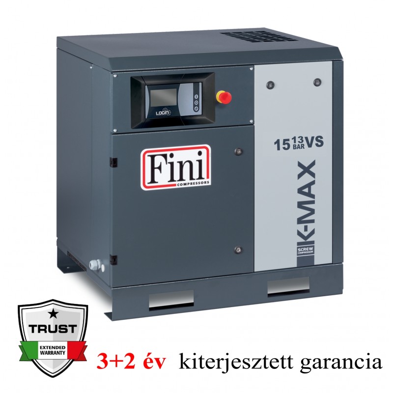 A K-MAX sorozat 7,5, 11, 15, 18,5, 22, 30, 37, 45, 55, 75 és 90 kW teljesítményű csavarkompresszorai fordulatszám szabályzós kivitelben is rendelhetők, így a magas teljesítmény energiamegtakarítással párosul. Egy frekvencia inverter képes dinamikusan szabályozni az elektromotor feszültség/frekvencia/áramerősség értékeit, így a kompresszor teljesítményét a rendszer pillanatnyi sűrített levegő igényéhez igazítja.