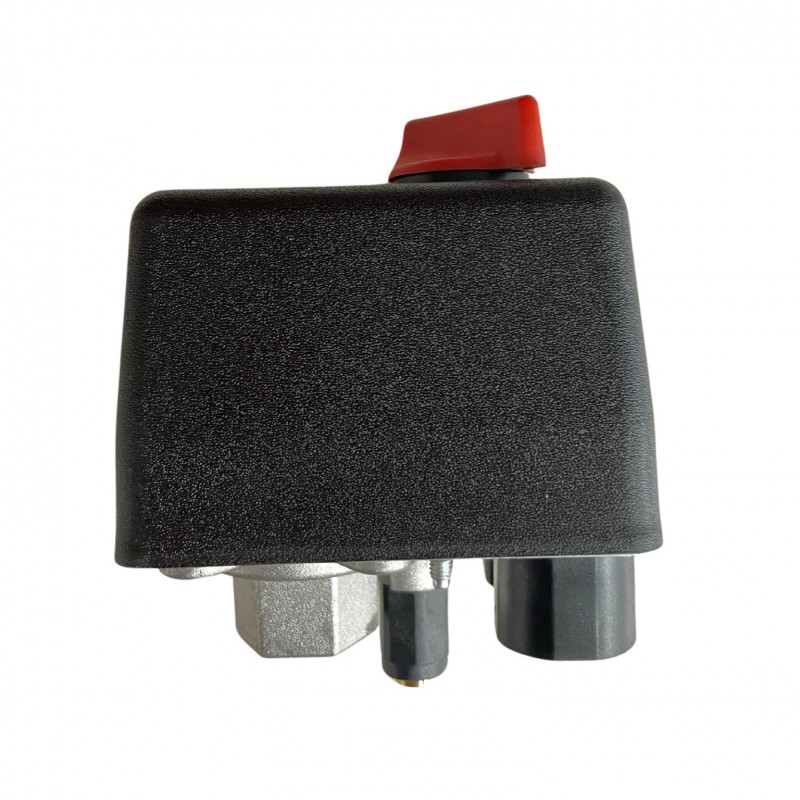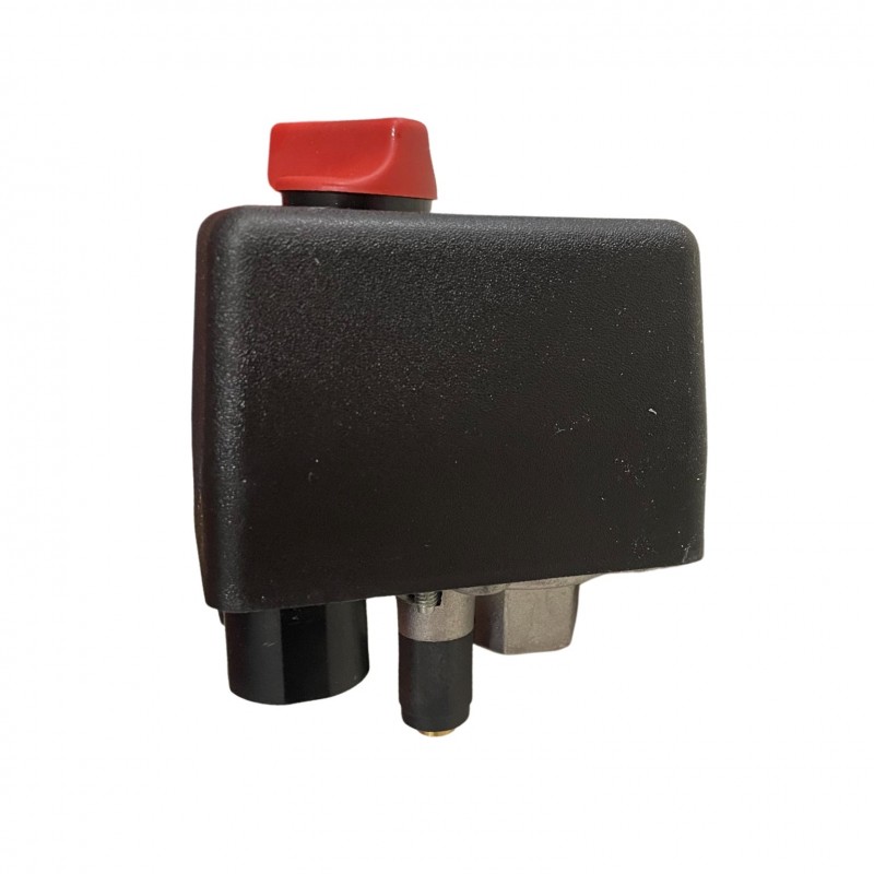 Nyomáskapcsoló a kompresszor alkatrésze. A kompresszor sűrített levegő termelése addig tart ameddig a nyomáskapcsoló az előre beállított értéknek megfelelően le nem állítja a kompresszort (általában 8 vagy 10 bar). Ebben a pillanatban hallható a jellegzetes "szisszenés" amikor a nyomáskapcsoló tehermentesítő szelepén keresztül távozik a sűrített levegő a hengerfejből, a sűrítőtérből, ill. a nyomócsőből. Ennek a folyamatnak az újraindítás megkönnyítése érdekében van szerepe. Ekkor a kompresszor stand by állapotban "pihen" de továbbra is áram alatt van. Akkor kapcsol be újra, ha a nyomáskapcsolón beállított visszakapcsolási értékre csökken a tartályban a nyomás (általában 6 vagy 8 bar).
